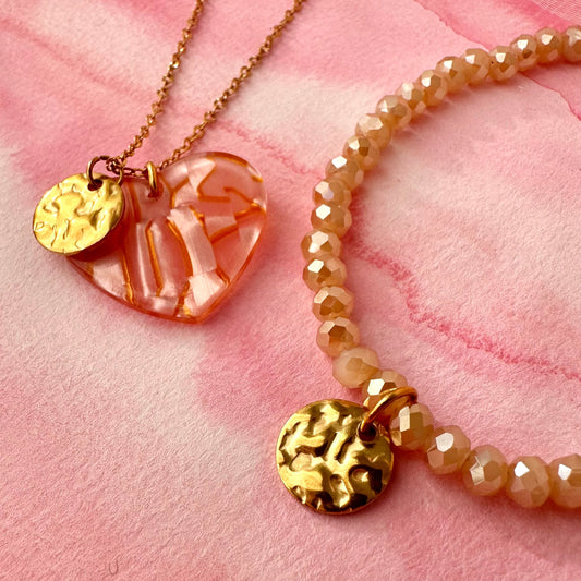Collier coeur + médaille martelée
