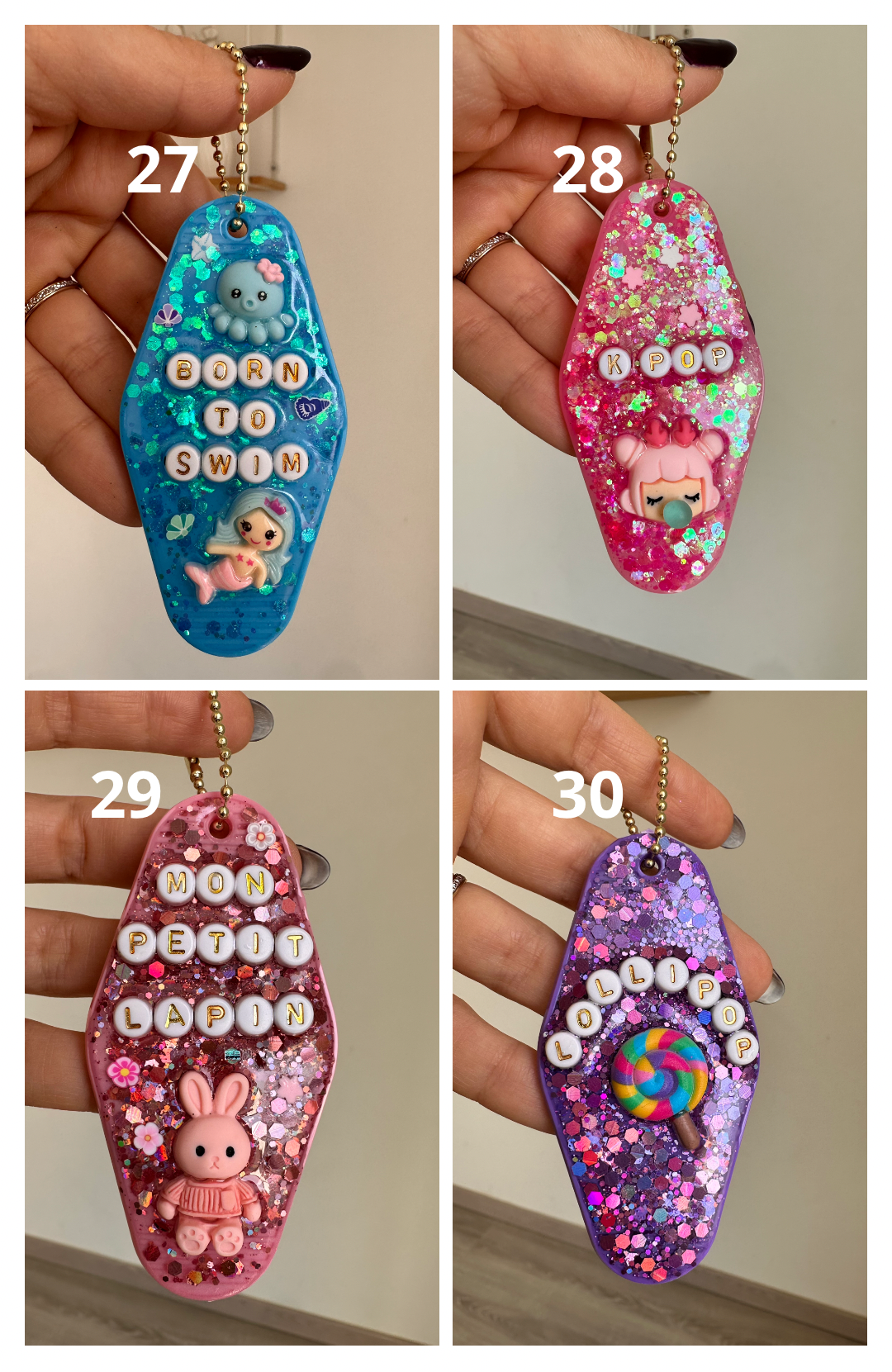 - Certains effets (paillettes, nuances, personnage, icones, etc.) peuvent légèrement varier d’une création à l’autre, ce qui rend chaque pièce unique.